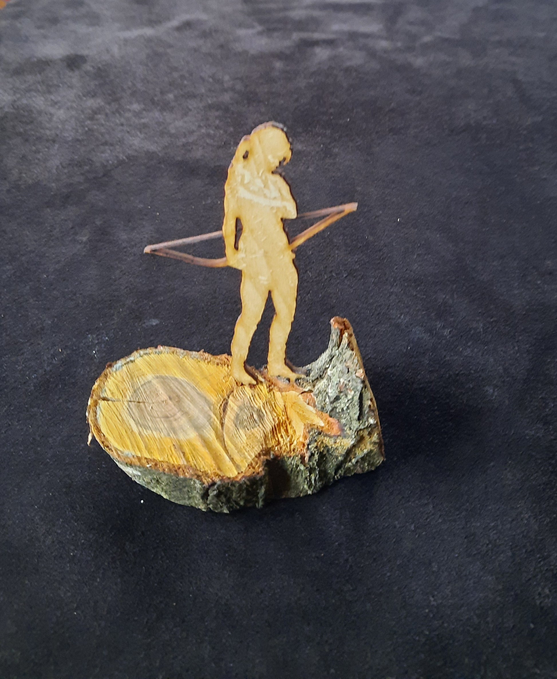 Diese laser-gravierte Holz-Skulptur einer Bogenschützin, vorm Schuss, besteht aus ca. 4mm dickem Holz und steht auf einer Holzscheibe aus Kirschholz. Die Holzfigur ist ca. 10 cm groß, kann aber auch größer bestellt werden - dazu bitte eine Email an "leder-stube@web.de" mit den genauen Wunschdaten.