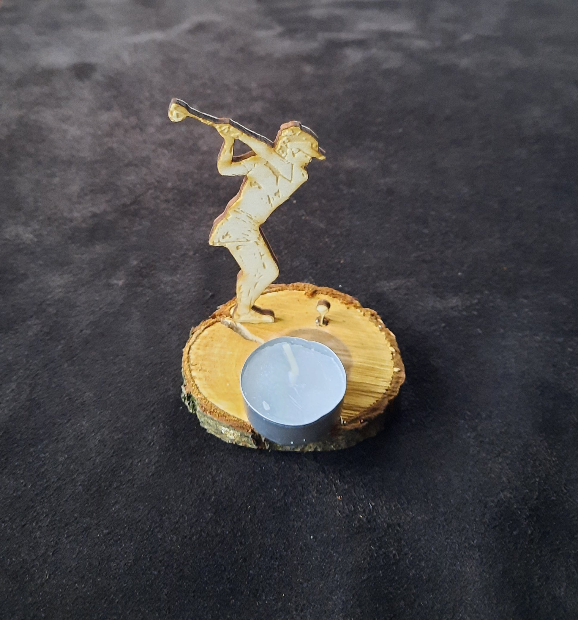 Stellt man ein Tee-Licht vor die Figur, wirft sie einen weichen Schatten, einer abschlagenden Golfspielerin an die Wand. Ein schöner Effekt und ein besonderes Geschenk zu vielen Anlässen.