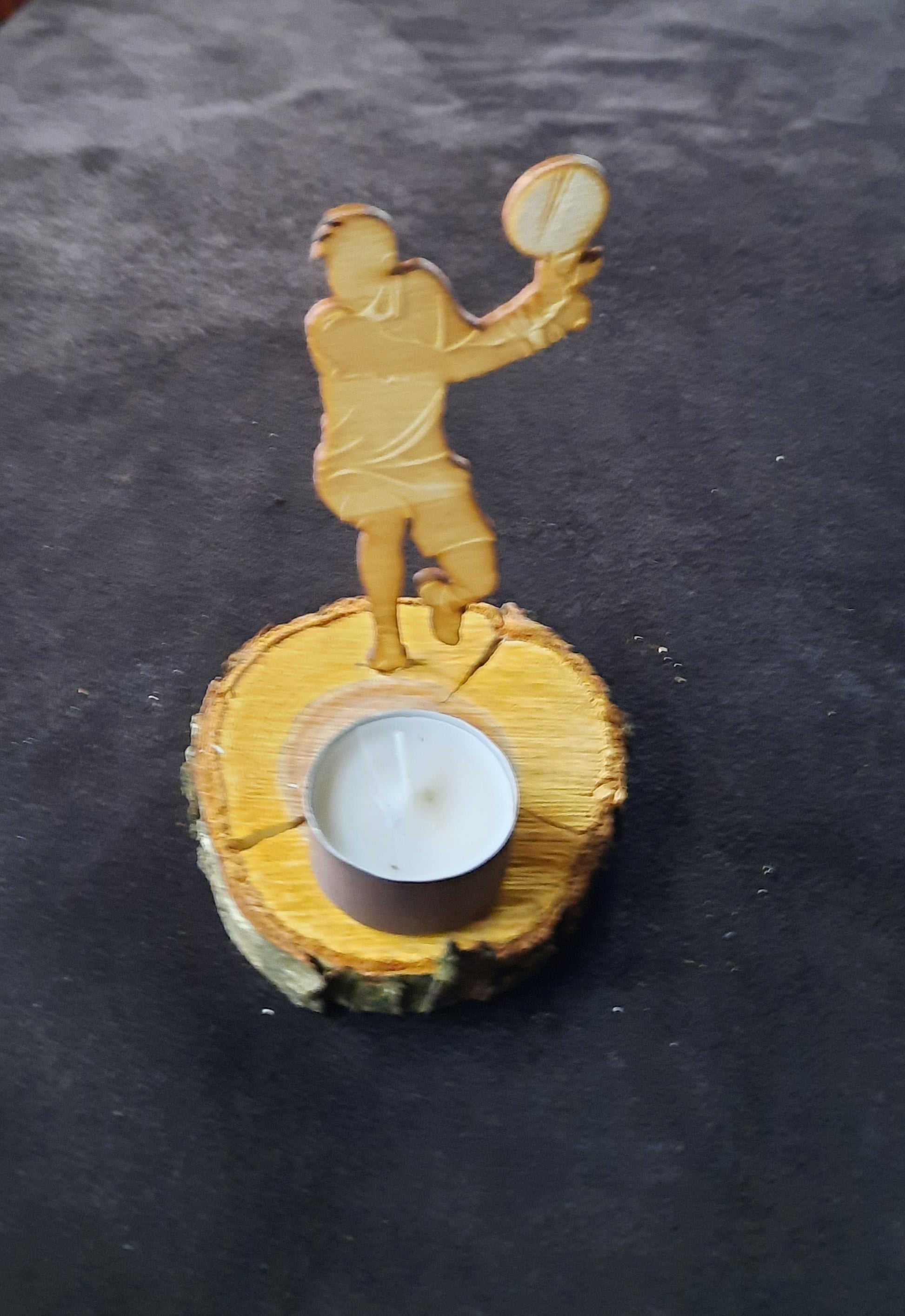 Stellt man ein Tee-Licht vor die Figur, wirft sie einen weichen Schatten, eines Tennis-Spielers an die Wand. Ein schöner Effekt und ein besonderes Geschenk zu vielen Anlässen.